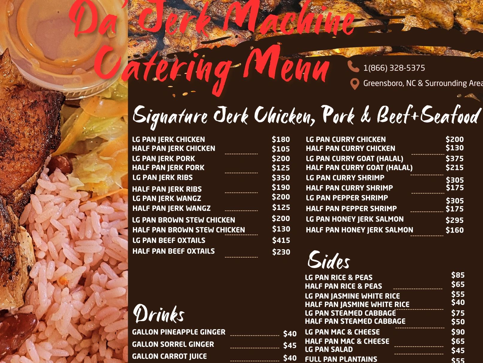 CATERING INQUIRIES PLEASE CALL OR TEXT (336) 230-4445 ONE WEEK IN ADVANCE.